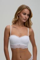 Бюстгальтер Soft bra выполнен из нежного кружевного полотна. Чашка на каркасах и с боковыми корсетными вставками. Нежная полоска кружева под грудью создает эффект полу корсета. Бретели регулируются по длине,не отстегиваются. Застежка на два крючка и три ряда петель.
