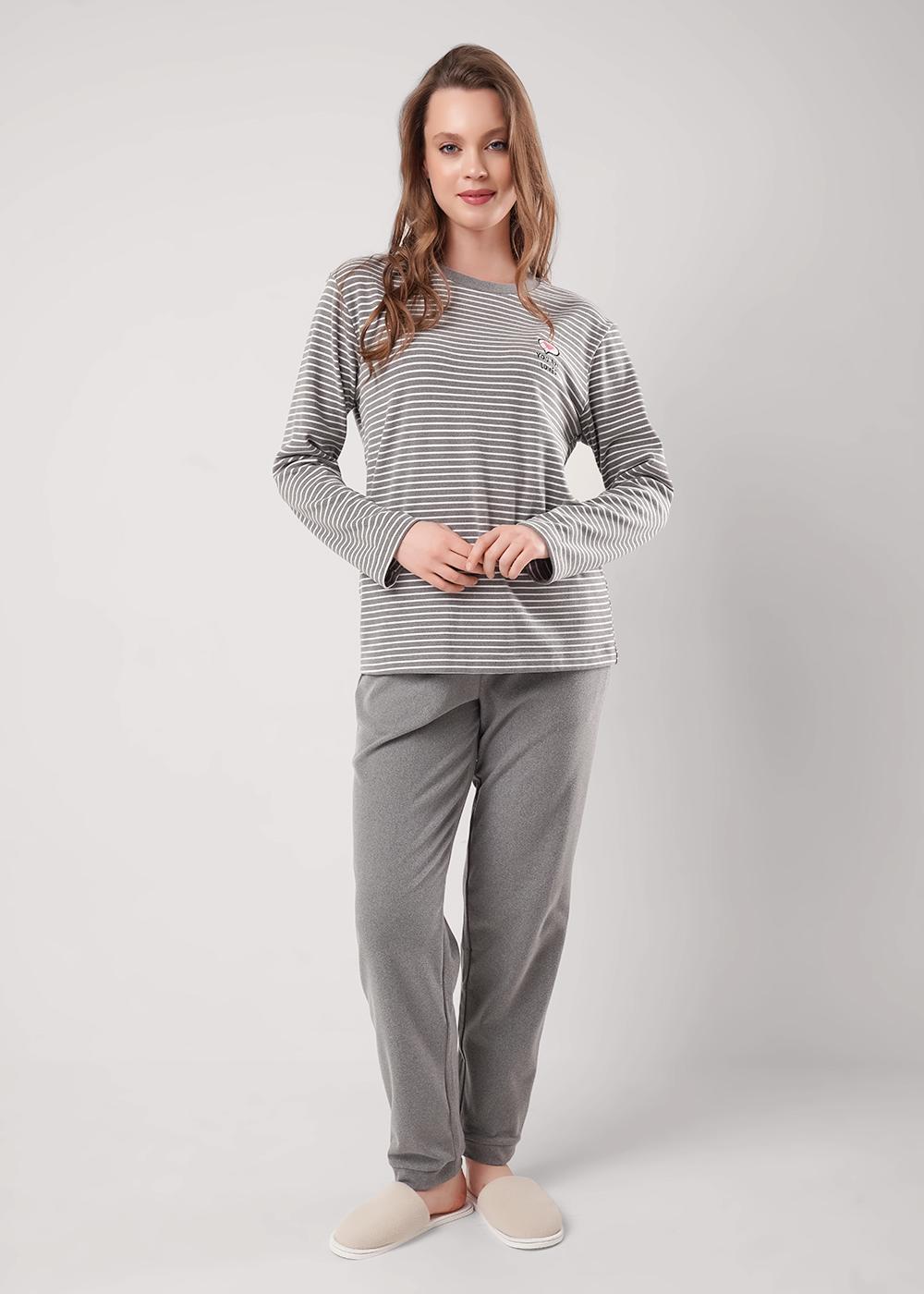 Mягкий и уютный комплект из джемпера с длинным рукавом и брюк на манжете, идеален для домашнего отдыха в прохладную погоду..