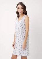 Ночная сорочка А-образного силуэта, из трикотажного полотна без рукавово. V-образная горловина, средняя ширина плеча. По горловине и пройме контрастная обтачка. По переду притачная планка с застежкой на пуговицы.