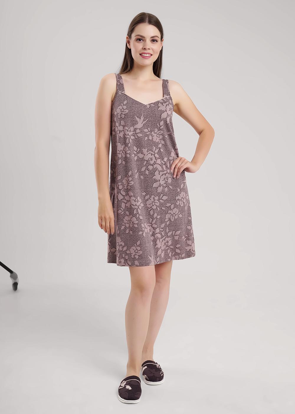 Ночная сорочка из хлопкового трикотажного полотна с добавлением модала, А-образного силуэта на бретелях. По горловине переда обтачка с кантом, бант. По пройме окантовка.