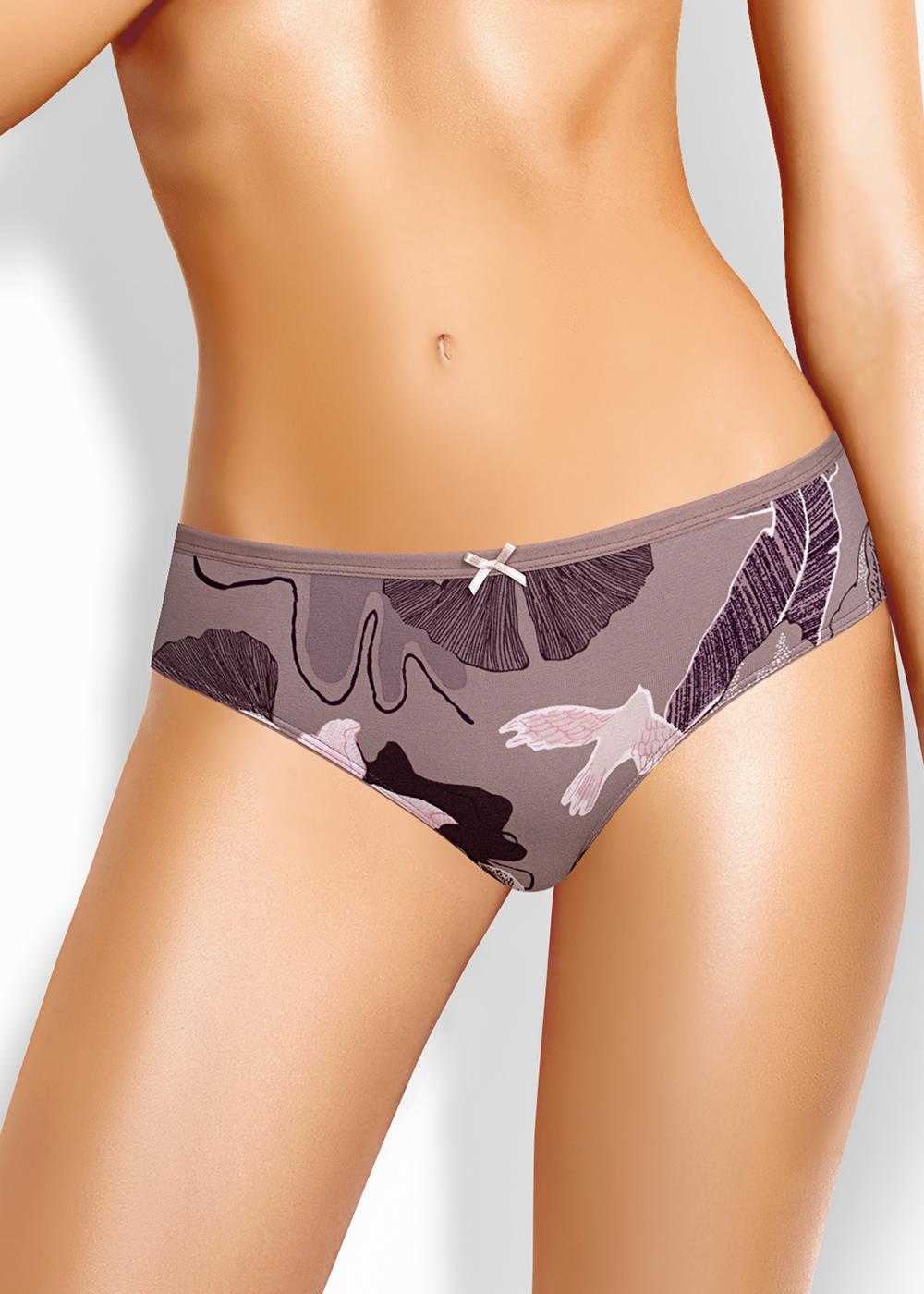 Трусы бикини женские из эластичного хлопкового полотна. Обработка краев по талии - окантовочная резинка, по ноге - полуокантовка. По переду атласный бант..