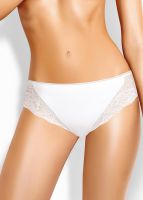 Трусы бикини женские из эластичного хлопкового полотна. По переду рез с кружевными боковыми вставками. Обработка краев по талии ажурная резинка (точечный зигзаг).