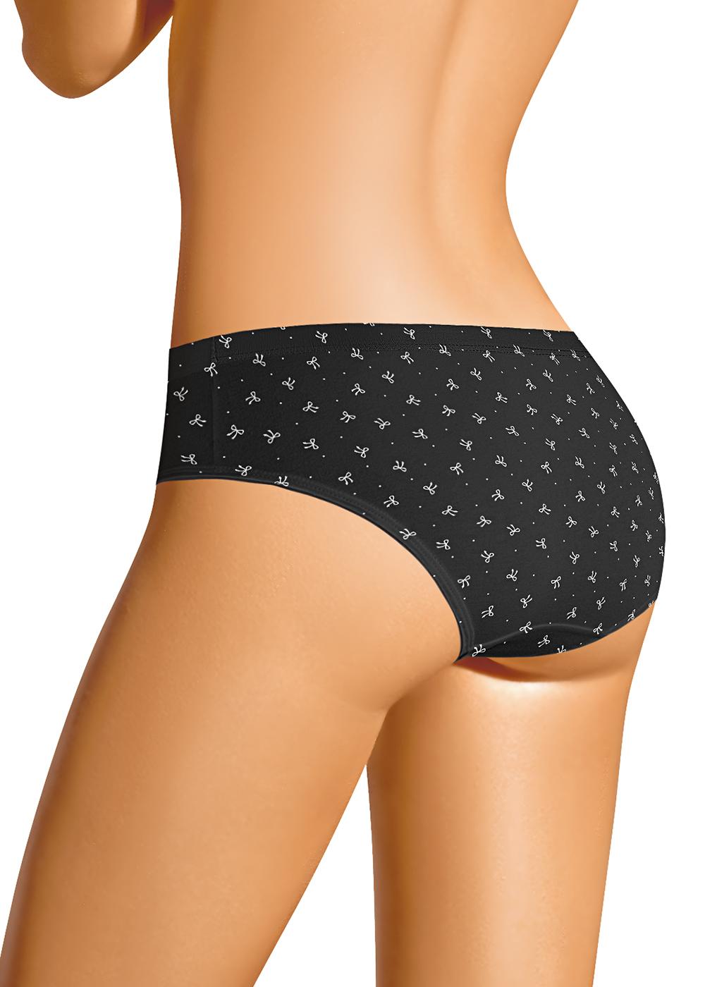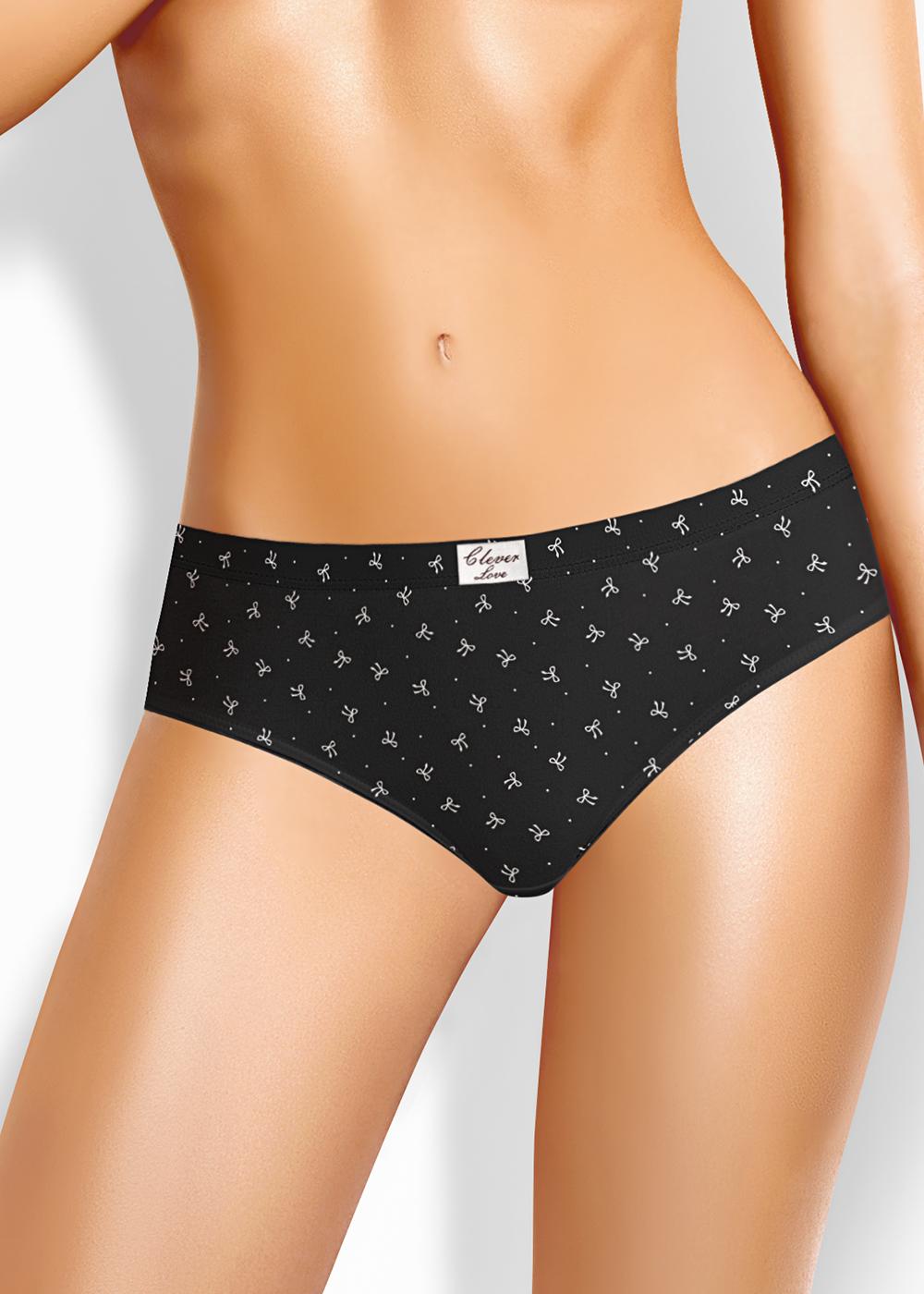 Трусы бикини женские из эластичного хлопкового полотна. Обработка краев по талии - окантовочная резинка с застилом, по ноге - полуокантовка. По переду атласный бант. ​​ ​