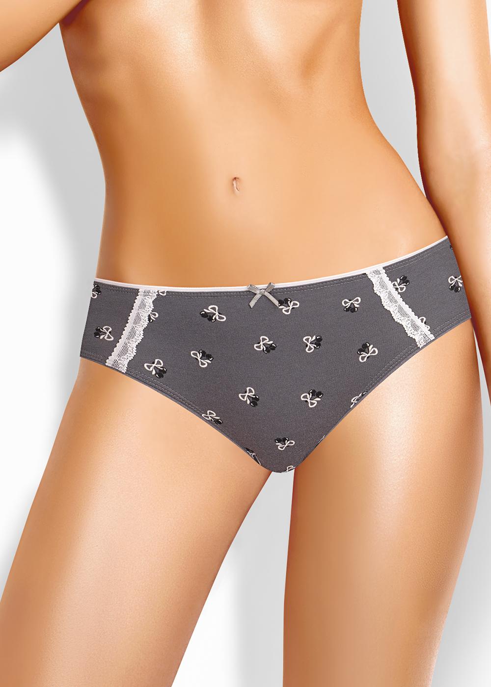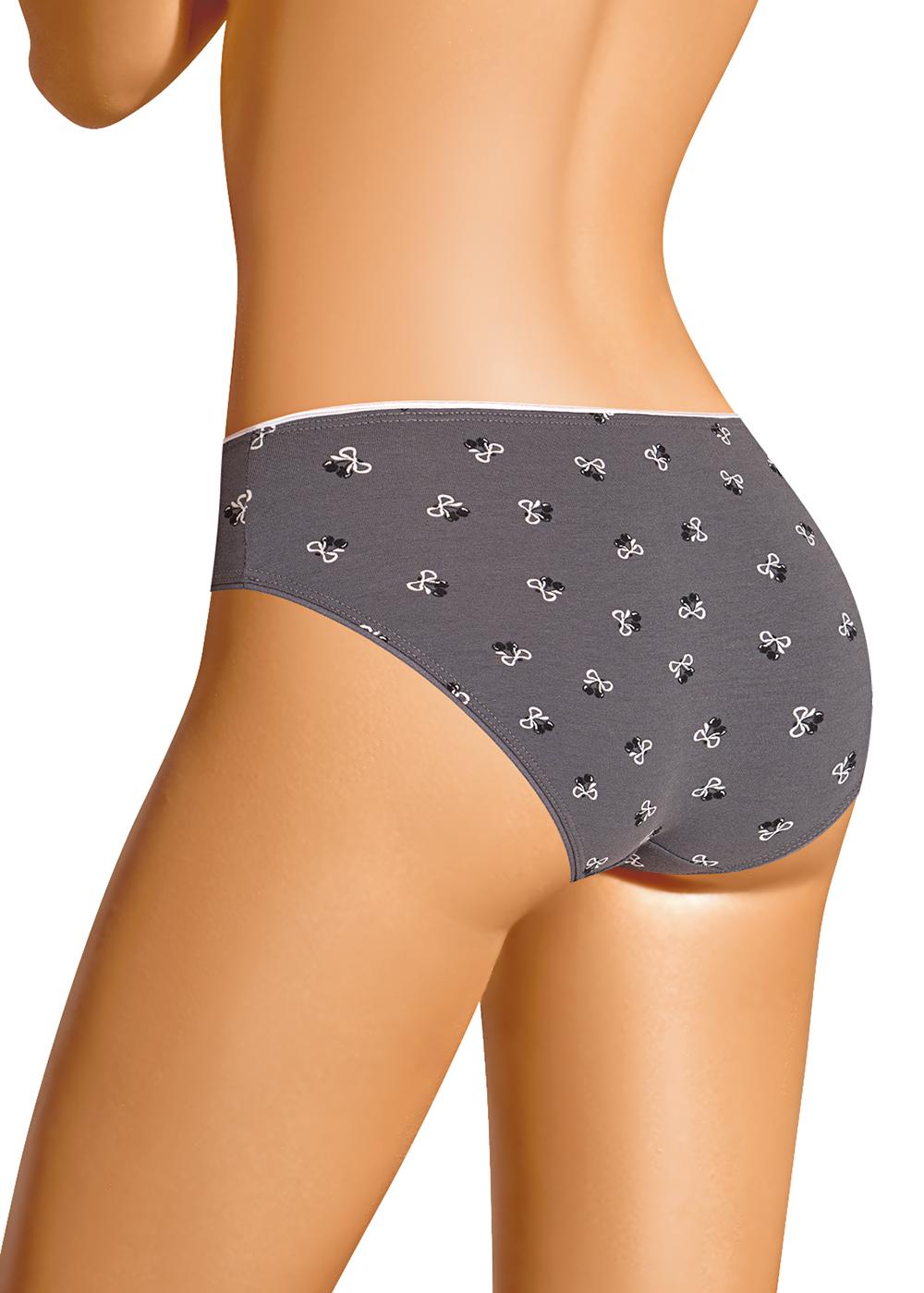 Трусы бикини женские из эластичного хлопкового полотна. Обработка краев по талии - окантовочная резинка с застилом, по ноге - полуокантовка. По переду атласный бант.