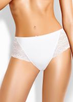 Трусы слипы женские из эластичного хлопкового полотна. По бокам вставки из кружева. Обработка краев по талии и ноге - ажурная резинка с фестоном, точечный зигзаг. По переду атласный бант.