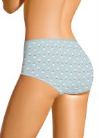 Трусы макси женские из эластичного хлопкового полотна. По переду двойная кокетка из отделочной ткани, в шве кокетки узкое кружево, по центру атласный бант. По талии спинки окантовочная резинка, по ноге - полуокантовка. Состав: 92%Хлопок8%ПУ (эластан)