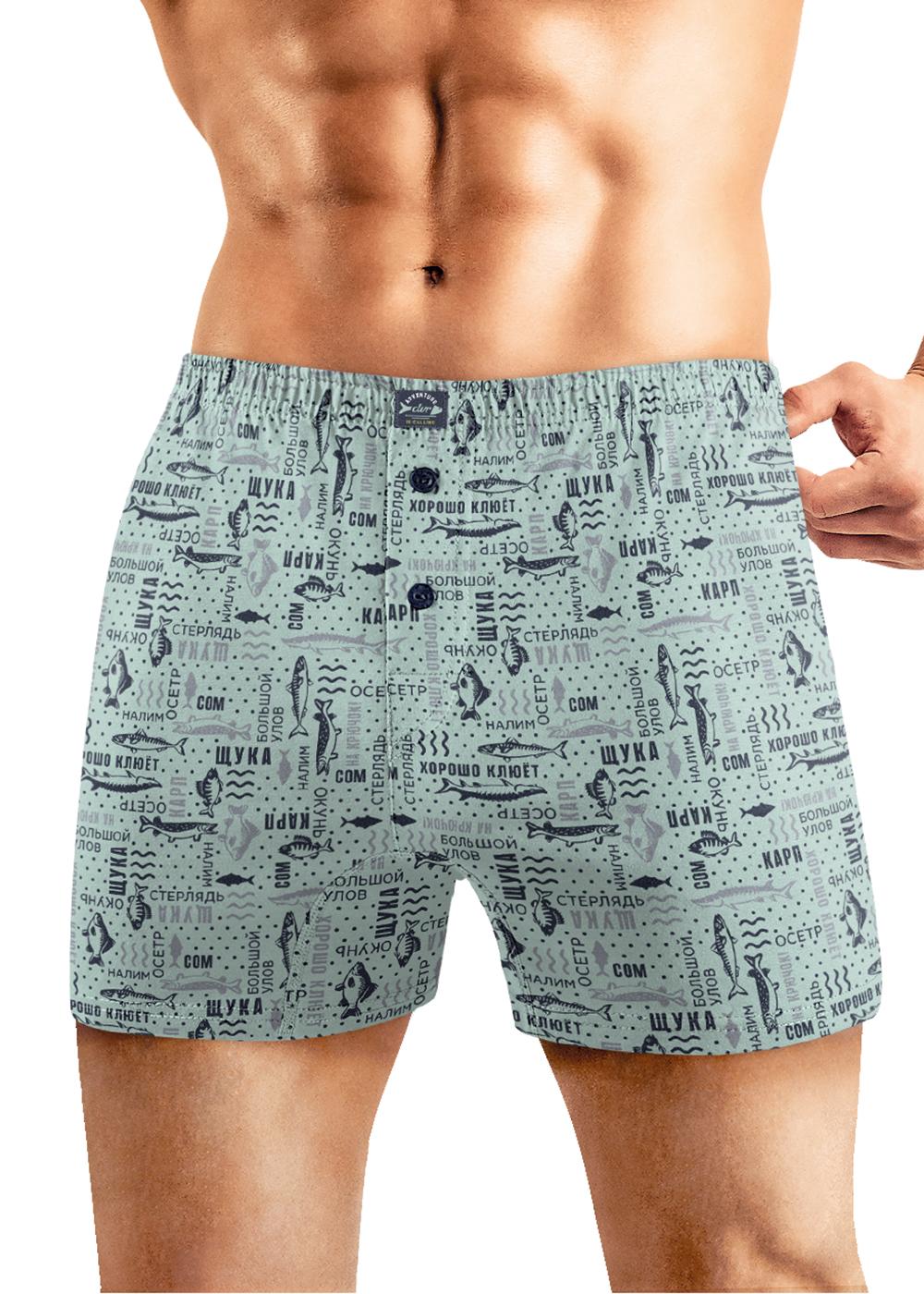 Мужские трусы боксеры из мягкого хлопкового материала. Экологичная ткань приятна для тела, прекрасно пропускает воздух и подходит для чувствительной кожи. Боксеры комфортной посадки выполнены из оригинального полотна в дизайнерскую набивку в тематике рыбалки. Трусы дополнены пуговицами и жаккардовым логотипом.